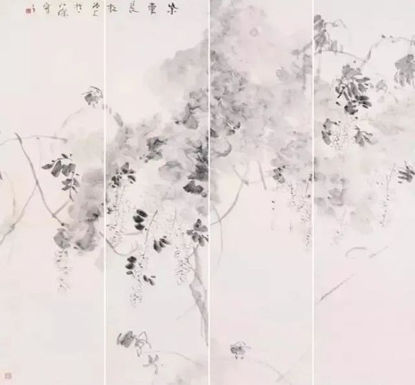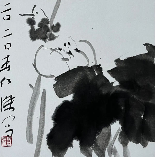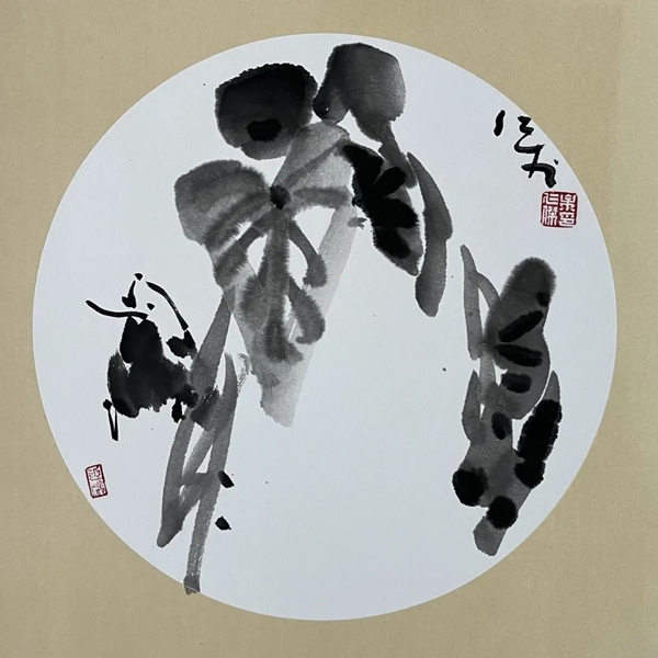 再細(xì)瞧余仁杰的荷畫(huà),葉脈意寫(xiě),造型單純,用筆若緊若松,或點(diǎn)厾、或潑寫(xiě)。線(xiàn)條在彈指揮灑間韌性十足,一切都看似用力,卻又點(diǎn)到為止。例如,荷花的花瓣皆不圈死,氣口充盈,花骨朵的清逸之氣便油然而生。荷花的葉柄或直或倚、或俯或仰,動(dòng)靜結(jié)合,體態(tài)悅目。