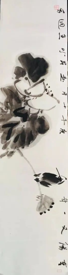 在余仁杰眾多的擅長(zhǎng)中,以畫(huà)荷和行草最具魅力。此處我們談的雖是余仁杰的畫(huà)荷藝術(shù),但亦不可忽視書(shū)法在其荷畫(huà)中的重要作用,沒(méi)有深湛的碑帖功力,絕難畫(huà)出荷柄的飽滿(mǎn)質(zhì)感、荷葉的飄逸灑脫、荷蕊的清新脫俗。