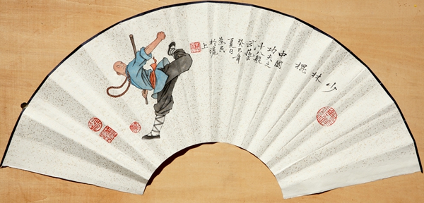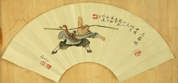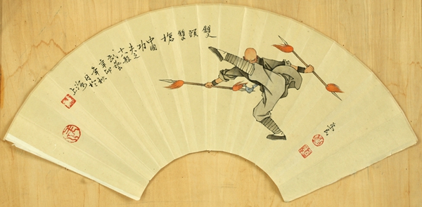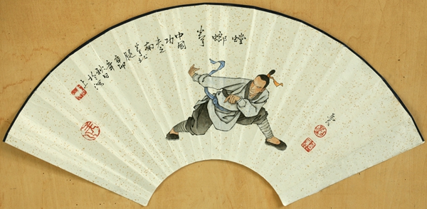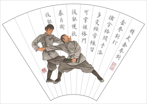 2012年,他為紀念辛亥革命百年而作《尚武精神》;2014年為配合“精武會”申報國家非遺項目創作的《精武拳械圖》;2015年為紀念抗戰勝利七十周年而作《喜峰口大捷》《大刀進行曲》;2018年創作《霍元甲威震上海灘》;2020年為紀念抗戰勝利七十五周年而作五條屏《大刀向鬼子頭上砍去》等等,無不與武術相關。他創作的武術系列作品,給市民特別是廣大青少年兒童正確認識武術具有積極意義。