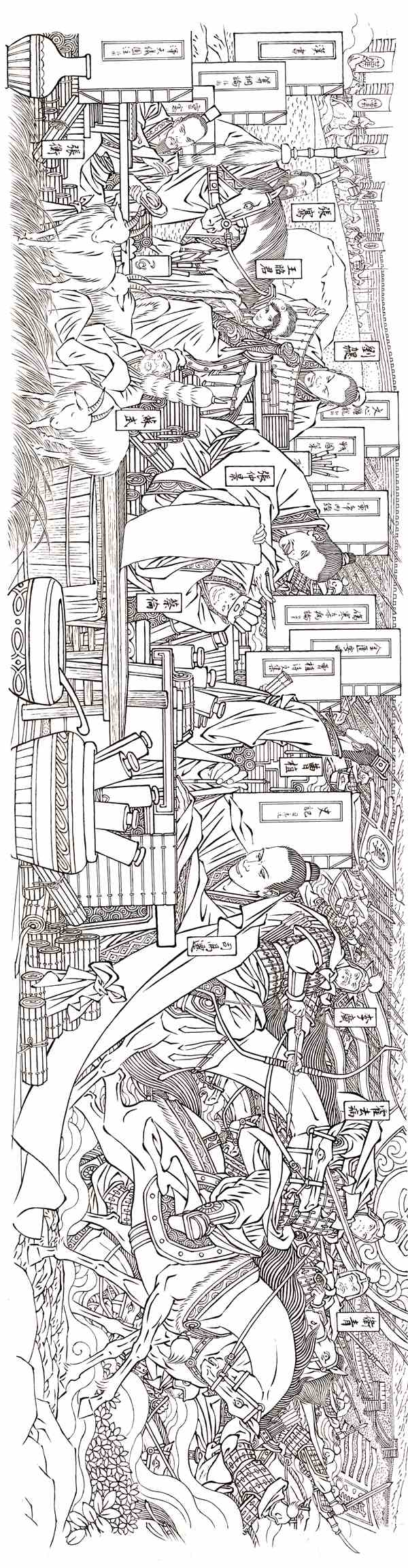 隨后,劉為民又花一年半時間創作了42米白描長卷《十八般武藝圖》,作為2010年 “上海世博”的獻禮。“十八般武藝”是指使用十八般兵器的技能,它最初是指刀槍劍棍等十八種兵器,隨著各朝代兵器的種類和型制不斷擴展已遠不止十八種,后來泛指古代冷兵器。《十八般武藝圖卷》由130個手持兵器的各朝代武者組成的畫面,形象地展現了古代豐富多彩的冷兵器及冷兵器發展脈絡,由汪觀清先生題書,與《中華百拳圖》成為兄弟篇。