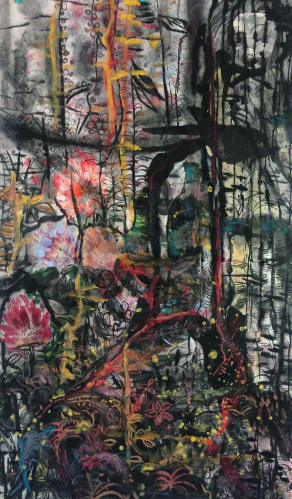 一直以來江加旺研究西方后現(xiàn)代主義、解構(gòu)主義的譯著,使其擴(kuò)大視野、了解世界藝術(shù)思潮,從而知已知彼,利于鑒別、取舍,更能堅定地走自己應(yīng)走的路,更能很好地面向世界。但是其深知如果對外來藝術(shù)思潮,不加分析,人云亦云,趨之若鶩,或貿(mào)然用其包裝,而失掉自己的藝術(shù)特色和品位,則是有害的。 西方藝術(shù),現(xiàn)代、后現(xiàn)代的各種流派盡管繁雜,而其總是受到一定的哲學(xué)思想的影響。可以說,有后現(xiàn)代藝術(shù),便有后現(xiàn)代哲學(xué),現(xiàn)代藝術(shù)某些隱晦、荒誕的繪畫,其本身不易理解,可從畫外尋找它的思想依據(jù),洞察其思路。有一種說法“繪畫藝術(shù)不可解釋”,若把這句話絕對化起來,就等于放棄了對繪畫作品的辨別。有解釋才能有較深的理解,有助于辨別和鑒賞。