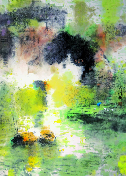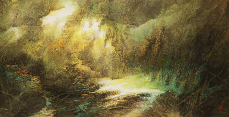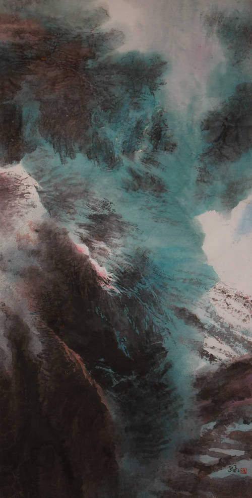 張復興近十年來踏山涉水,歷游山川,探索繪畫的新理念、新技法和新境界,尋求表現中國畫的當代語匯和個性特質,以直抒心性的方式和自由開放的情懷,力圖破解多畫種的界線,將不同繪畫元素與傳統筆墨相融合,構造出一種極具原創的技術,從而形成了全新中國畫山水的表達形式。