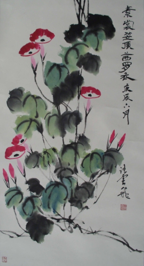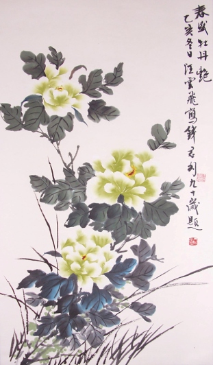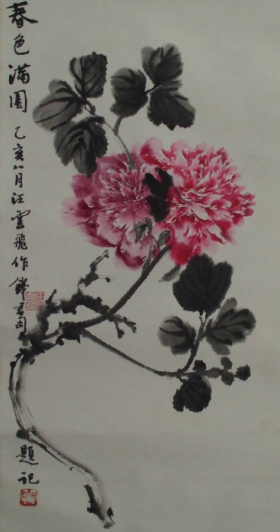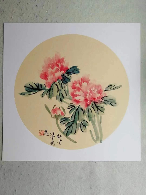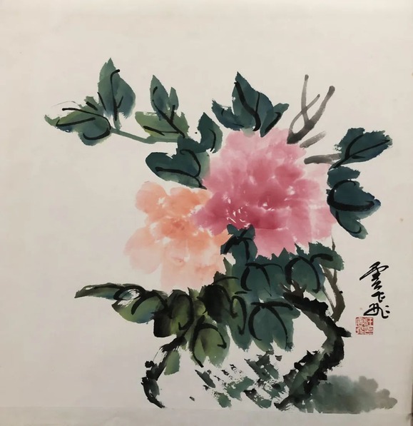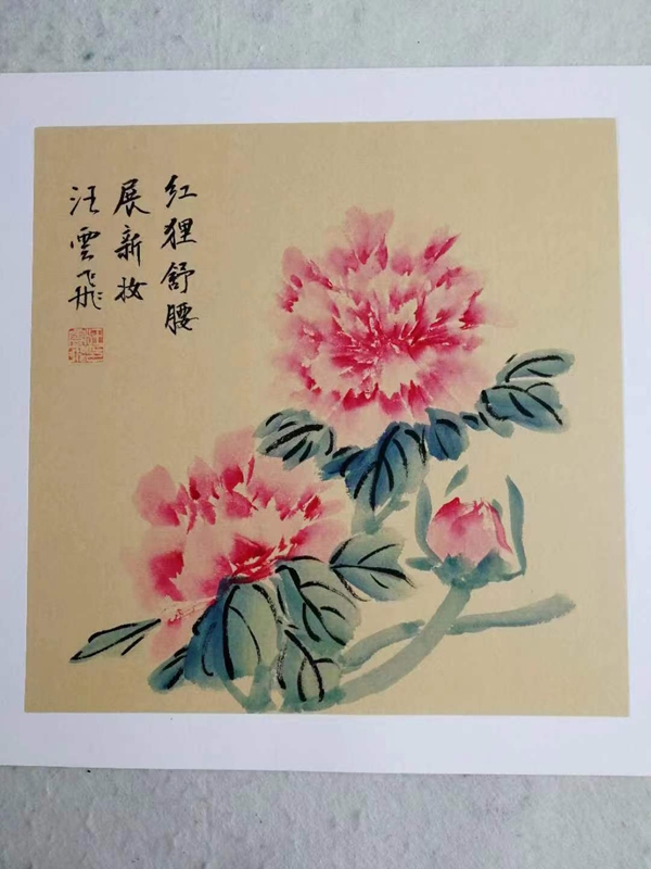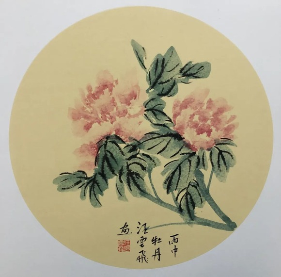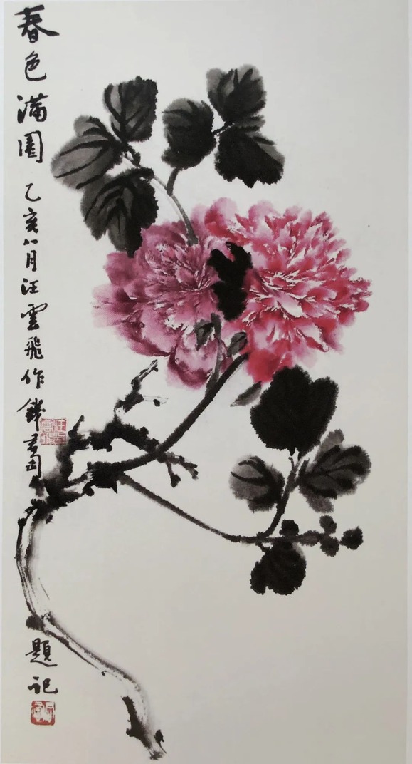 汪云飛的藝術(shù)根基源自中國(guó)傳統(tǒng)書(shū)畫(huà)的深厚傳承。作為已故上海美專校長(zhǎng)張雪父的入室弟子,他繼承了海派繪畫(huà)注重寫(xiě)生與筆墨韻味的傳統(tǒng);同時(shí),師從裝幀與篆刻大師錢(qián)君匋,使其藝術(shù)語(yǔ)言兼具金石篆刻的力度與裝飾美感。這種雙重師承背景,為其牡丹創(chuàng)作注入了“書(shū)畫(huà)同源”的文人氣質(zhì)。