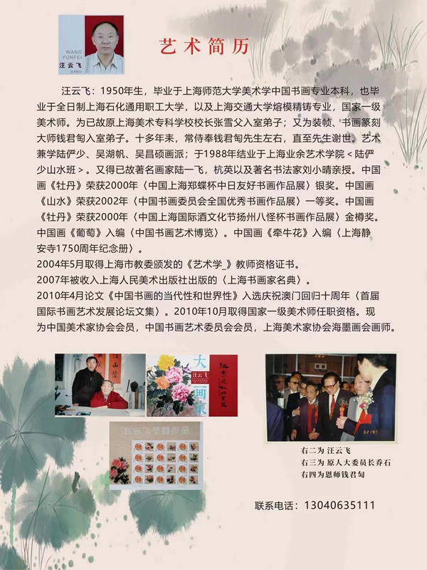 汪云飛本科畢業(yè)于上海師范大學(xué)書(shū)畫(huà)專業(yè),此前就讀于上海石化職工大學(xué)機(jī)械制造與工藝專業(yè)。作為工程師,同時(shí)也從事風(fēng)機(jī)設(shè)計(jì)工作。值得注意的是,汪云飛的教育經(jīng)歷呈現(xiàn)出罕見(jiàn)的跨領(lǐng)域特征。他不僅研習(xí)中國(guó)書(shū)畫(huà),還曾就讀于上海交通大學(xué)六機(jī)部熔模精鑄班,這種工科背景或許影響了他對(duì)物象結(jié)構(gòu)的精準(zhǔn)把握。此外,1988年結(jié)業(yè)于上海業(yè)余藝術(shù)學(xué)院陸儼少山水班的經(jīng)歷,使他在山水畫(huà)的空間布局與花卉題材之間找到獨(dú)特平衡點(diǎn),牡丹作品中常可見(jiàn)虛實(shí)相生的空間層次感。