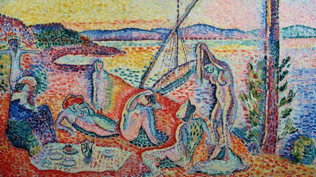 在這幅畫中,斑斕的色彩交織在一起卻沒有喧囂混亂的感覺,反倒有種寧靜,體現出一種人間樂園般的情調。