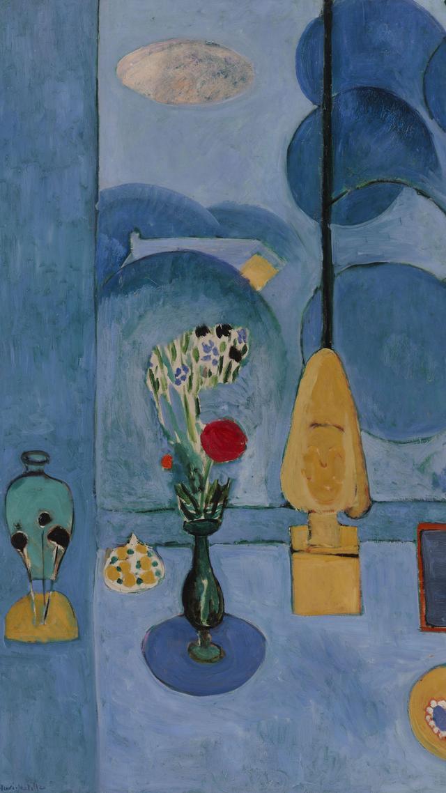 畫面給人一種肅穆祥和寧靜之感,介乎室內外之間的窗子似有若無,闡釋了馬蒂斯表達一種心境的繪畫目的。
