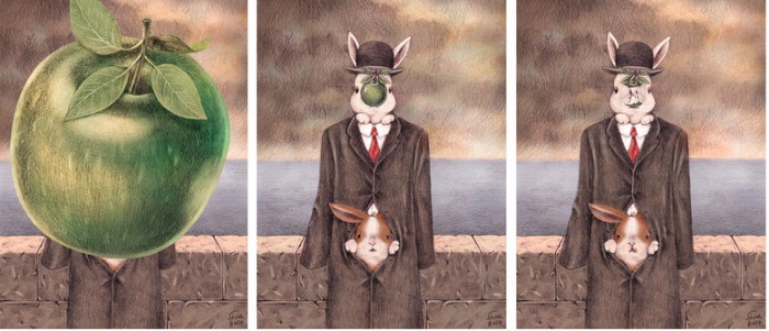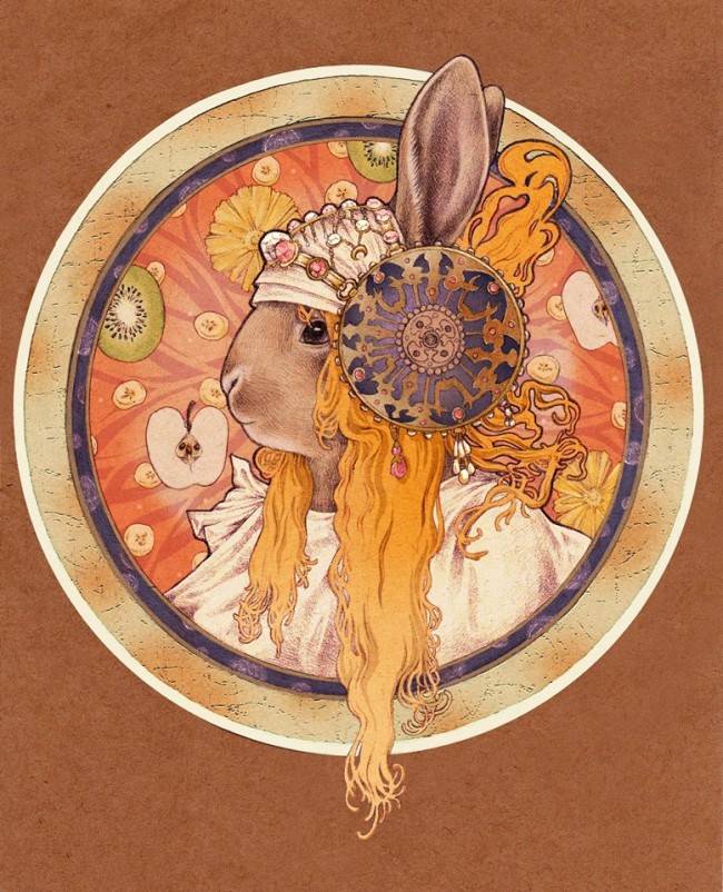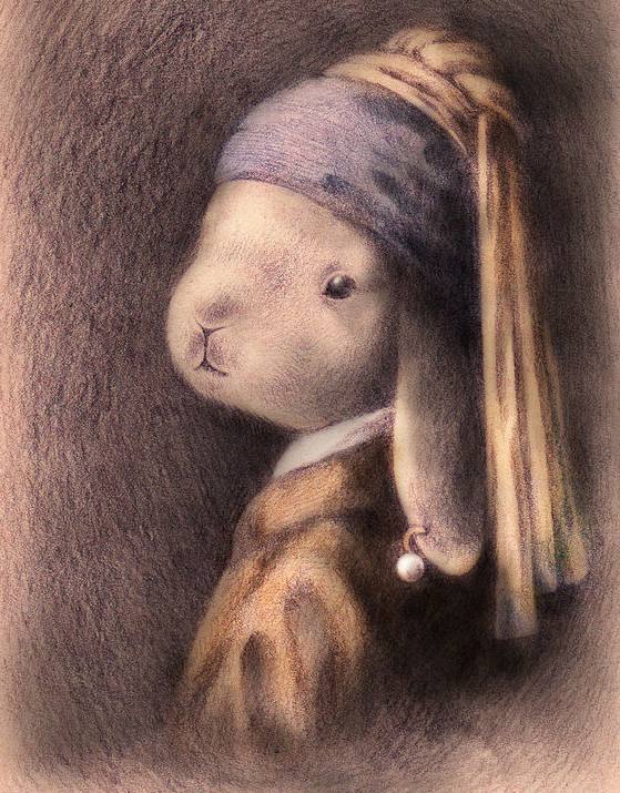 動物一向都是最治愈人心的存在,溫順的毛發、無辜的雙眼不管是男是女都很難抵擋它們的魅力,插畫家Shae以兔子為主角帶領大家穿越世界名畫、經典卡通角色的世界,看著呆萌的兔子置身于名畫中的小拙樣但似乎又一本正經地扮演著自己的角色,令人更想抱抱他們,其中象是《維納斯兔的誕生》、《戴珍珠耳環的少兔》、《崩潰兔的吶喊》更跳脫了古典藝術沉悶的氣息,Shae出了翻玩經典之作外也創作了許多鮮明的童話角色象是:小木偶、小紅帽等,栩栩如生的筆觸加上兔兔們溫順的萌樣讓我們更深陷手繪的魅力。
