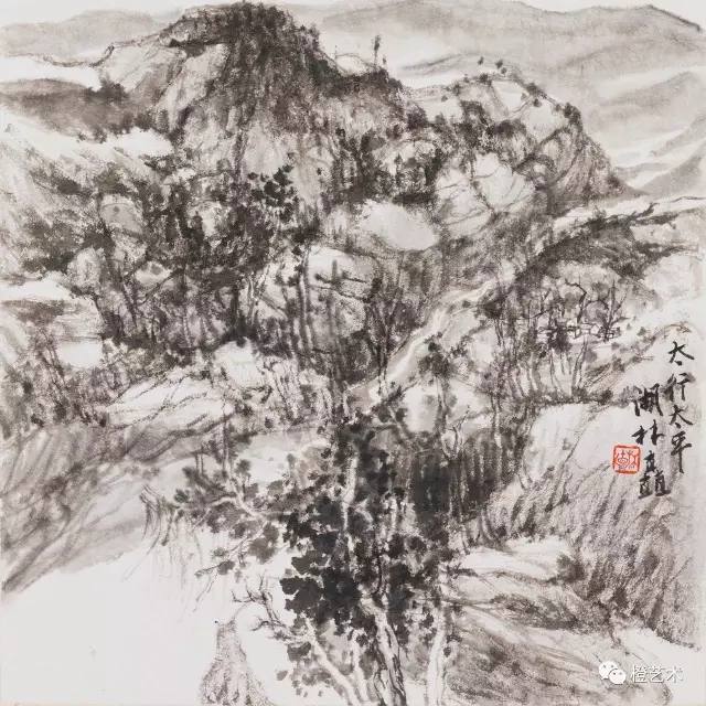 近幾年來,上海美術界重創新、重生活,協會也不斷組織藝術家深入生活,扎根人民,倡導堅持以人民為中心的創作導向。上大美院也很好踐行師生深入生活,林矗在學校帶隊參與采風寫生,我也常見林矗背著重達三十多斤的畫箱,走進農村、山野,他的足跡走遍大江南北,太行山區深深吸引林矗的創作視線,他把太行山作為山水畫創作的基地。這次展出的水墨寫生大多是太行山之行的水墨寫生。我讀了林矗的水墨寫生作品,他堅持傳統筆墨的基礎上,有生活味,眼前的真山真水只是他寫生的形式和符號,可以隨意組合揮寫,為我所用,他的水墨寫生作品透露出一股文人畫的氣質。林矗在多年藝術寫生、創作中自我認識到,“寫生能夠體會自然的生機,理解生命之道”,他認為寫生更是“連接自然”、“連接傳統”、“連接自我”、“連接時代”的重要組成部分,“我們接觸自然的機會比古人少得多,對自然的感情也往往不夠深厚。因此今人更有寫生的必要,在寫生的過程中,覓古賢之跡,敬仰先賢,感悟山水之真諦”。他覺得在自然中認真觀察思考,感悟自然之道,真正的自我才能浮現出來,得到釋放。