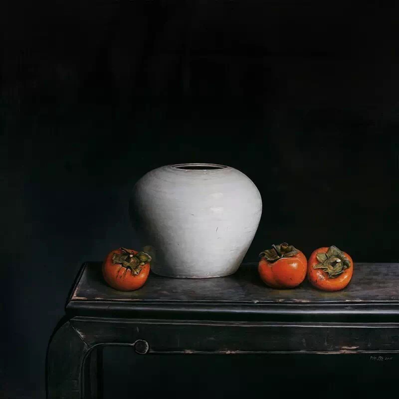 陳唐  《瓷罐與柿子》  布面油畫  50x50cm