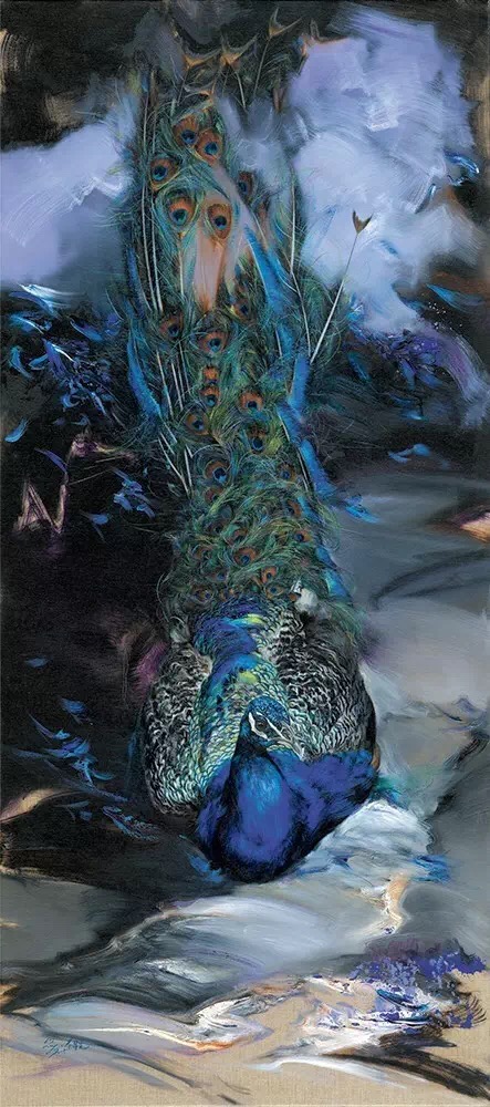 劉盡航   孔雀-2  布面油畫  80x180cm