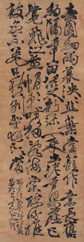 徐渭的書法和明代早期書壇沉悶的氣氛對(duì)比顯得格外突出,他最擅長氣勢(shì)磅礴的狂草,但一般人很難看懂,用筆狼藉,他對(duì)自己的書法極為喜歡,自己認(rèn)為“書法第一,詩第二,文第三,畫第四”。