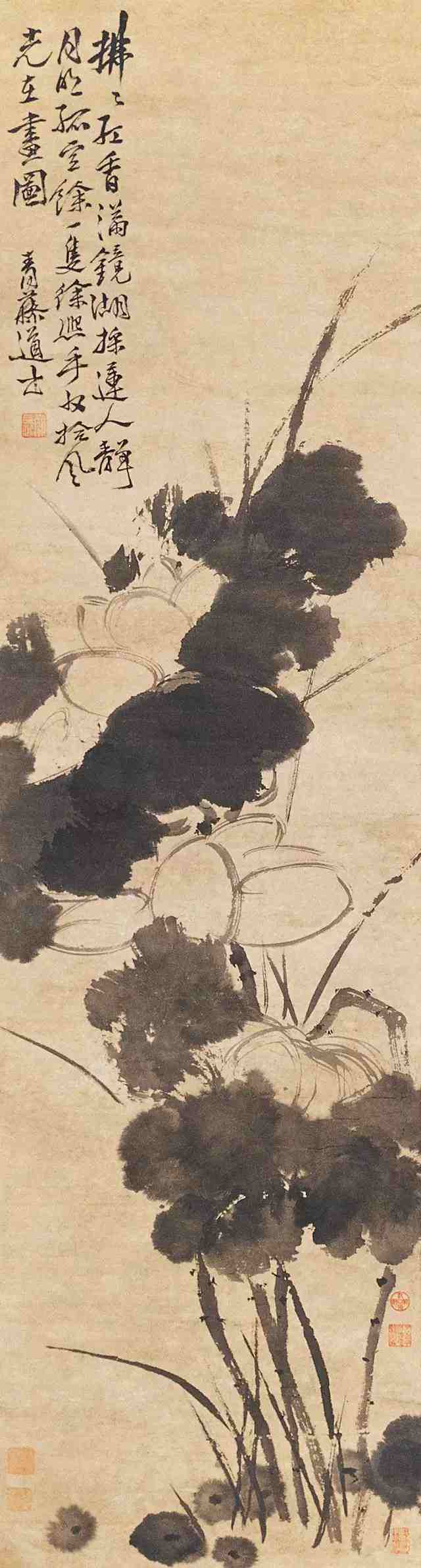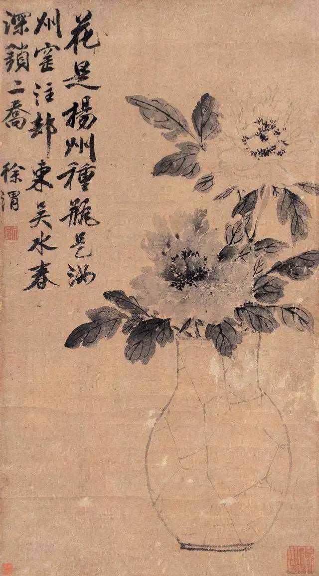 徐渭多才多藝,在詩文、戲劇、書畫等各方面都獨(dú)樹一幟,與解縉、楊慎并稱“明代三才子”。他是中國“潑墨大寫意畫派”創(chuàng)始人、“青藤畫派”之鼻祖,其畫能吸取前人精華而脫胎換骨,不求形似求神似,山水、人物、花鳥、竹石無所不工,以花卉最為出色,開創(chuàng)了一代畫風(fēng),對(duì)后世畫壇(如八大山人、揚(yáng)州八怪等)影響極大。書善行草,寫過大量詩文,被譽(yù)為“有明一代才人”。能操琴,諳音律,愛戲曲,所著《南詞敘錄》為中國第一部關(guān)于南戲的理論專著,另有雜劇《四聲猿》、《歌代嘯》及文集傳世。