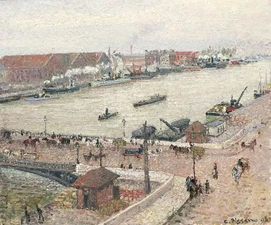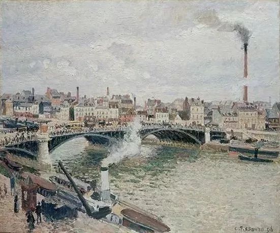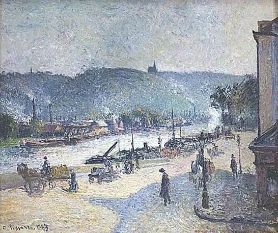 最后,他還是舍棄了與他志趣不相投合的點描主義,又重新按照自己的方式來作畫;然而,畢莎羅除了一直為拮據的經濟所困外,又因患有眼疾,使他不能露天作畫,但這些困擾并未阻撓他繪畫的意愿,于是他改在畫室中工作,并且經常到盧昂、巴黎、第厄普和勒哈佛等地方小住,并且從他居住公寓的窗口或從旅館的房間,來描繪城市風光。