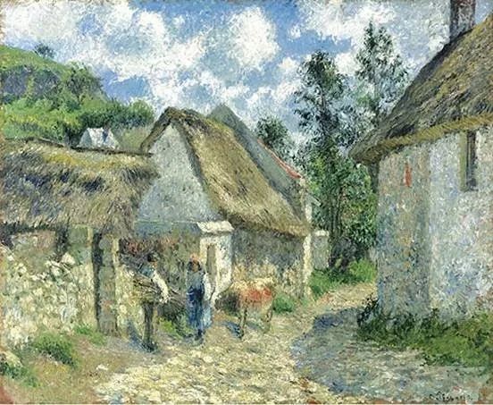 畢莎羅與其它印象畫家不同的是,他不沉迷于云光倒影,水霧迷離的表現,而是把對生活的深刻信念,與法國傳統的鄉村文化融入畫作中,專心致力于描繪土地與鄉村,充份表現出對自然界親切而深厚的情感。60歲后的他,生活有所改善,但是因腿疾而不能行走,就天天在窗邊作畫,直到病逝。