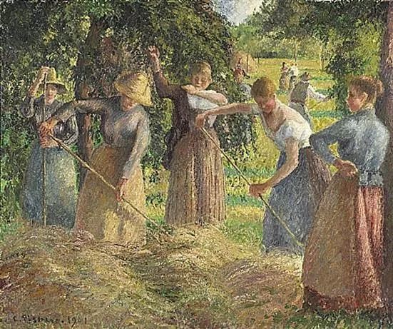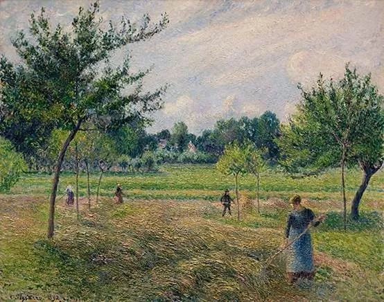 有人曾向竇加問起米勒和畢莎羅,他回答:“米勒嘛?是的,他的《播種者》確實是在為人類播種;而畢莎羅筆下的農民都是為了給自己掙面包而勤于勞動?!?畢莎羅對形態與技法進行了仔細的研究,成功地取得了他那充滿恬靜氣息的畫面。