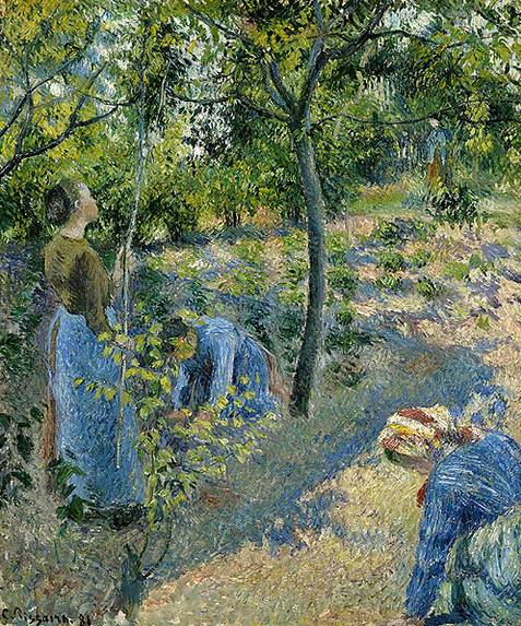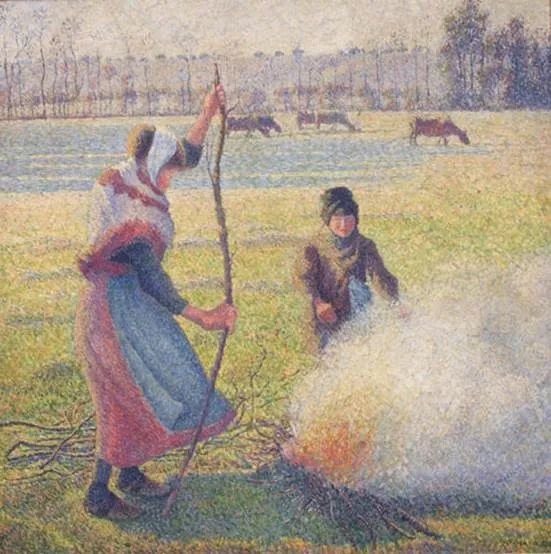 畢莎羅正是利用這種深淺層次和透明力度來表現光線、體積和空間,以上下重疊,彼此相互融合的筆觸來描繪人像。