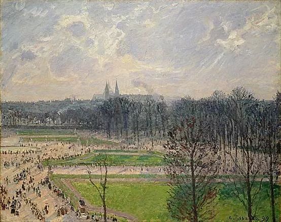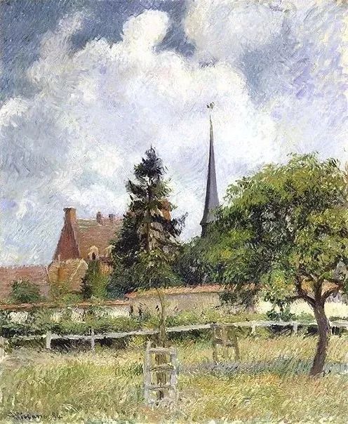 在這幅畫中,畢莎羅恰如其分地確定好形態,只用了少數幾種色彩,而那些濃郁的色調卻能顯現出水晶般清澈的畫面來,而且還呈現出天空里無盡的深淺層次,重疊交錯又分外清晰。