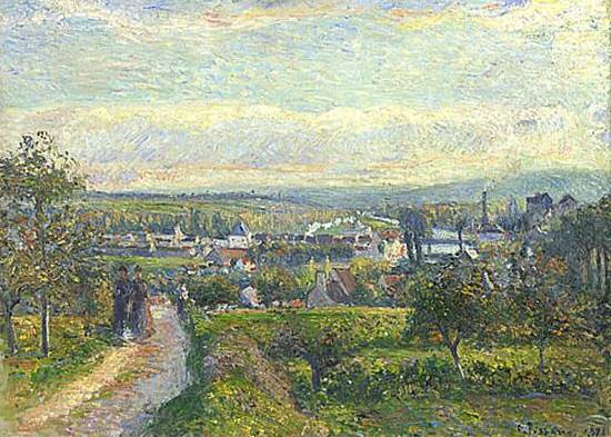 畢莎羅是印象主義之父,在經歷了分光主義畫法之后,在他的晚期又重回到明亮的風景畫土來,這些風景畫建立在完整而平衡的結構之上,顏色絢麗多彩,同時在明朗的色調和反光中,又顯得格外透明,也更加鮮艷。