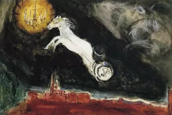 對于某些人而言,擁有一個夢想勝于實現這個夢想。當他擁有夢想時,這一夢想始終是忠實于他的。實現夢想卻意味著各種可能性,也許就意味著夢想的離開。夏加爾生活在自己的夢想當中,讓一切都在他的夢想里漂浮。雖然他的作品無人問津,他在巴黎藉藉無名。人們對他的最高評價是“優秀的色彩畫家”,卻不愿去理解他那貧困而憂郁的生活以及對俄羅斯黑色大地的復雜愛戀。