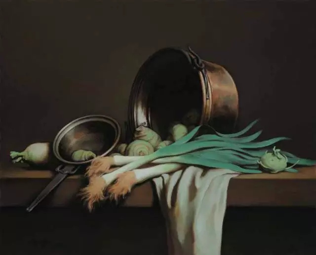 吳正恭 帶有銅鍋、大蔥和甘藍的靜物 61×76cm 布上油畫 1996年