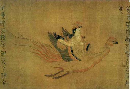 五星二十八宿真形圖,絹本設(shè)色,縱27.5厘米,橫489.7厘米。日本大阪市立美術(shù)館藏。本圖繪五星二十八宿神形象。五星即金、木、水、火、土星。二十八宿最初是古人為比較日、月、五星的的運(yùn)動而選擇的二十八個星官,作為觀測時的標(biāo)志。此圖繪想象中的星宿形象,現(xiàn)僅存五星和十二宿圖。推測此圖當(dāng)為原作之上卷。每星、宿一圖,或作女像,或作老人,或作少年,或獸首人身。每圖前有篆書說明。卷首題有隸書“奉義郎龍州別駕集賢院待制仍太史梁令瓚□”。人物用游絲描,細(xì)勁秀逸,勻潔流暢,設(shè)色古雅精微,圖中的牛、馬等動物形亦生動傳神,畫風(fēng)謹(jǐn)嚴(yán)。圖中太白星神、風(fēng)星神的形象,臉部修長,尚存南朝人物畫的遺風(fēng),可能據(jù)時代更早的底本傳摹所致。本圖亦被題為梁張僧繇所作。據(jù)明清人著錄記載,當(dāng)時流傳時代較早,內(nèi)容相同的同名畫卷不止一本。卷中鈐有“宣和殿寶”和雙龍璽,可知曾藏于宋宣和內(nèi)府,清中期為安岐所藏,清末歸完顏景賢,后流入日本。《圖繪寶鑒》、《平生壯觀》、《大觀錄》、《墨緣匯觀》著錄。