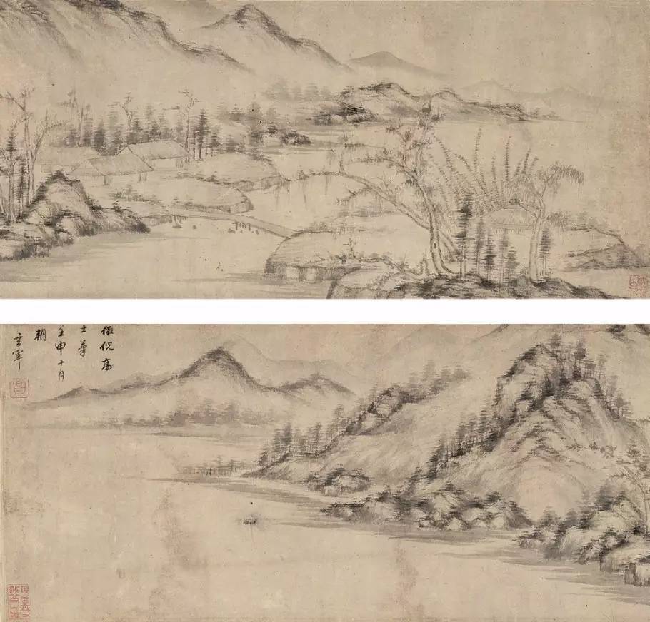 王時敏,“清四王”之一,開創了婁東畫派,到了晚年,其真跡者,署名時一定是斜的,從右往左斜,不斜者多是他的兒子王撰代筆。