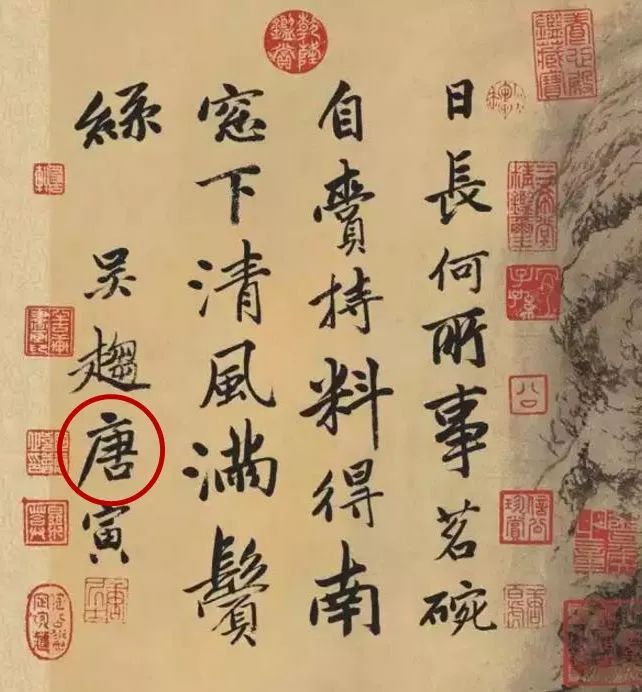 唐寅(唐伯虎)的署名,“唐”字多是用一豎連“口”字,用一橫連“口”字的多是有問題。