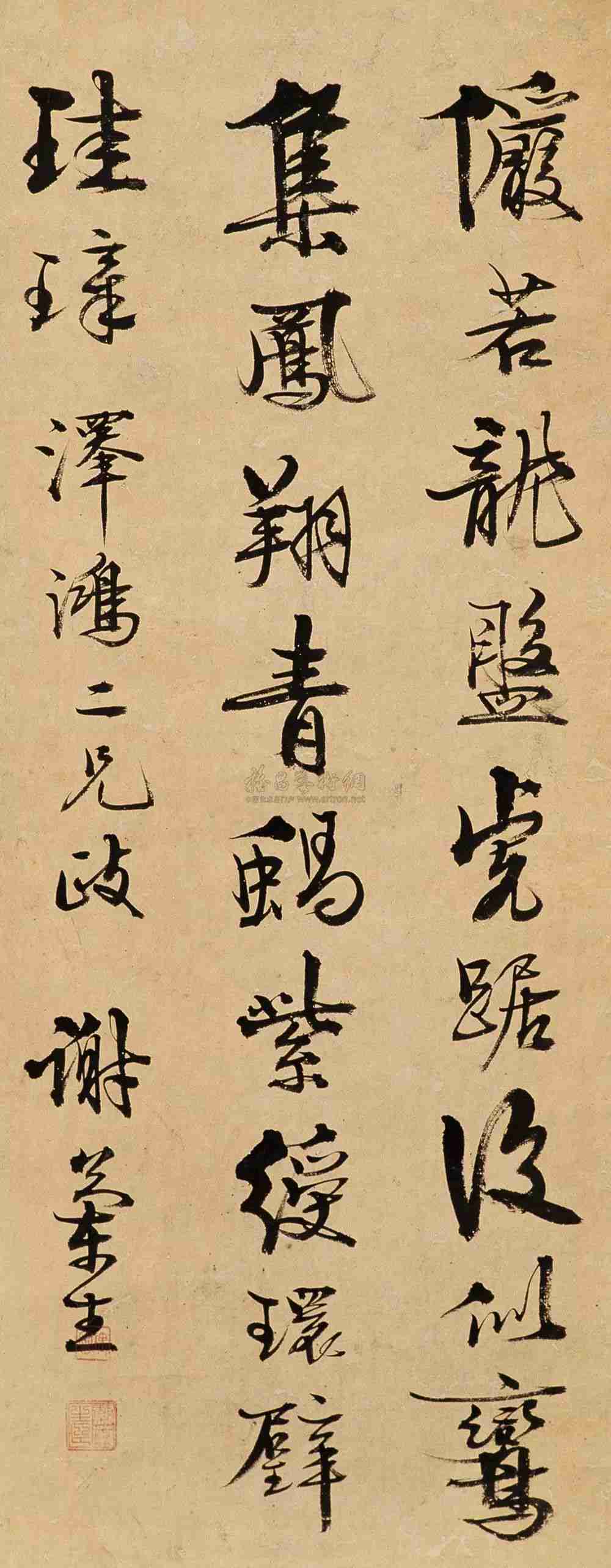 謝蘭生(1769~1831),嶺南山水畫家。字佩士,號澧浦、里甫、理道人,廣東南海人,寓廣州。嘉慶七年進士,羊城書院掌教。工詩善畫,詩學蘇軾,畫得吳鎮、董其昌、王原祁等人法。謝蘭生署款時則是,字不“里甫”,畫不“蘭生”。