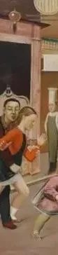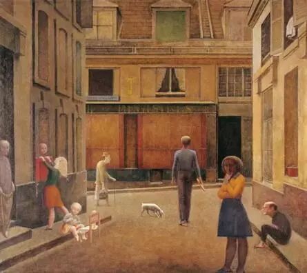 1933 街道 The street這幅作品是畫家的第一幅大型油畫,給他帶來了不少爭議。這幅風俗畫描繪了畫家住所附近的街景,畫面左側的場景令人錯愕。