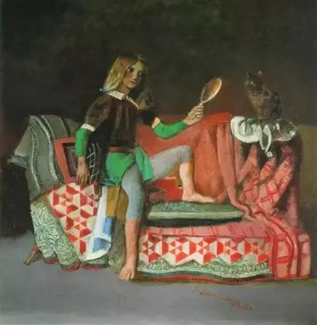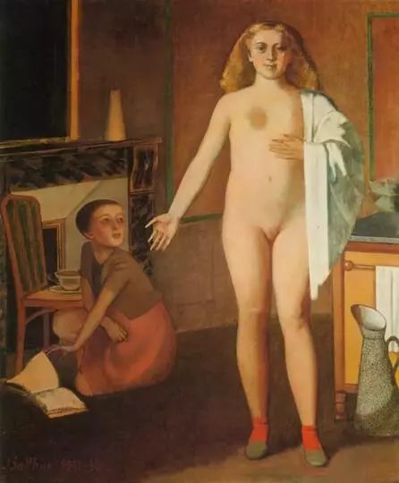 巴爾蒂斯作品我們欣賞巴爾蒂斯的作品時,就仿佛在穿過水晶鏡,凝視在那一瞬間被魔法固定的人,隨后,行動又恢復正常。