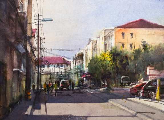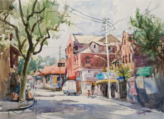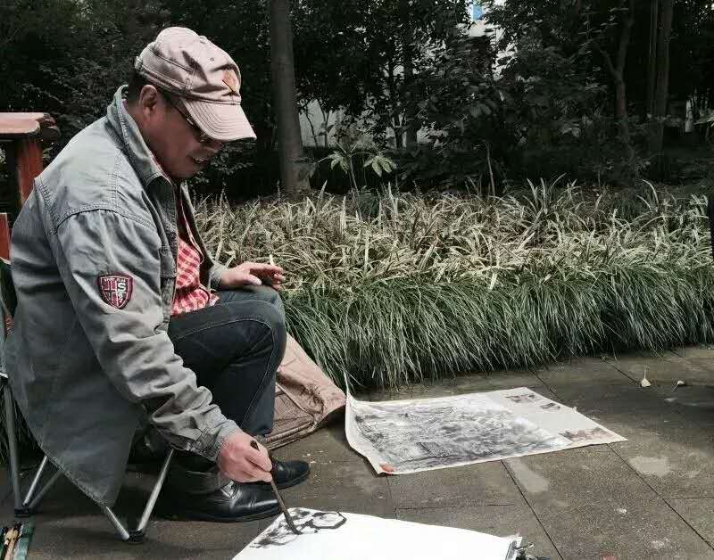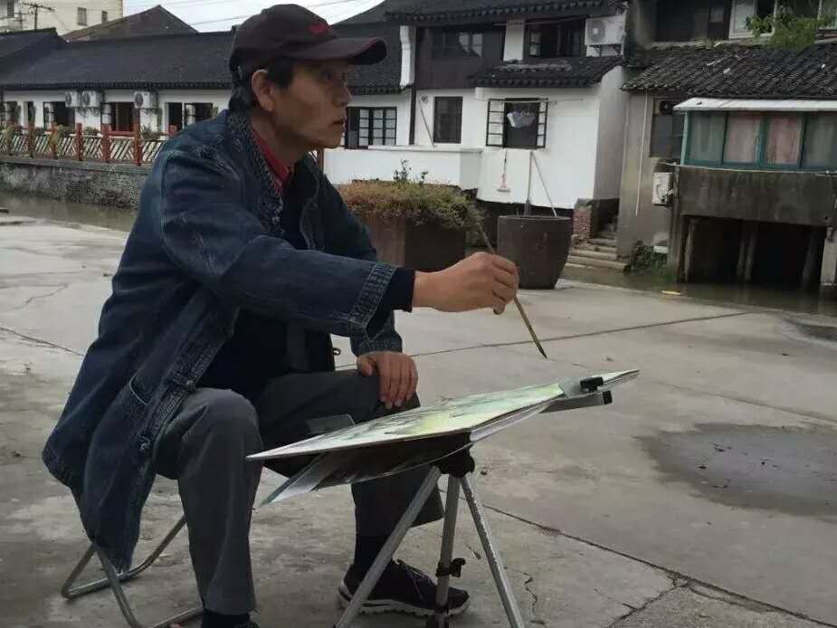 上海美協副主席、秘書長陳琪在奉賢青村鎮寫生示范