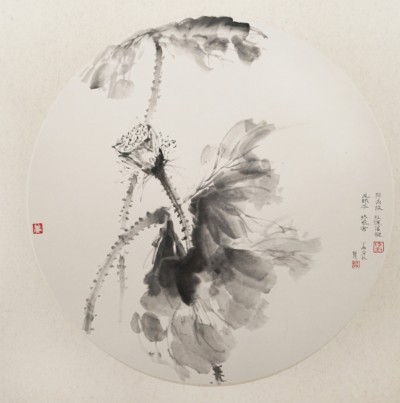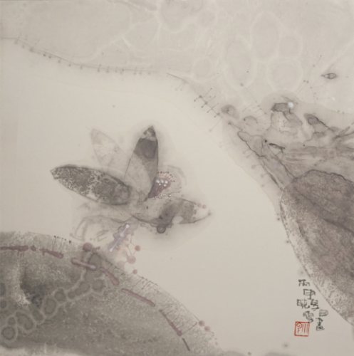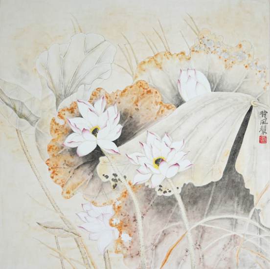 陳曉云《海灣公園荷花寫生 4 》國畫 45×45cm