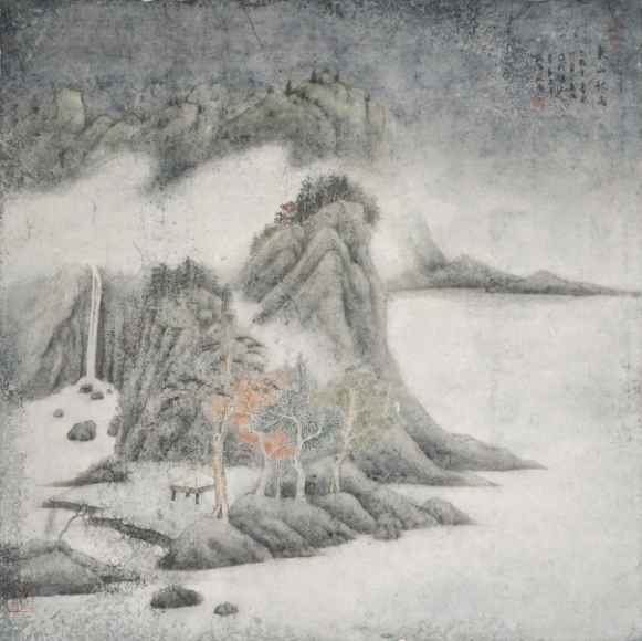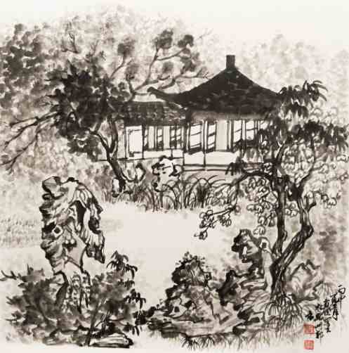 黃良俊《園林意趣系列之三》國畫 45×45cm