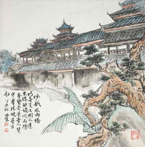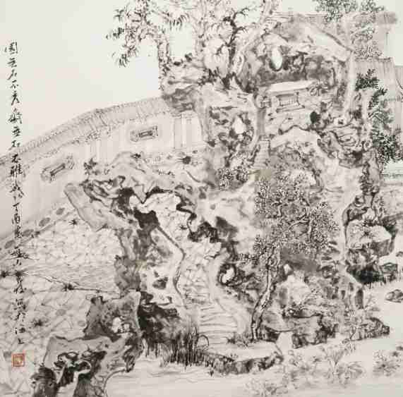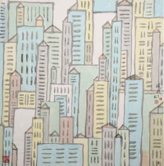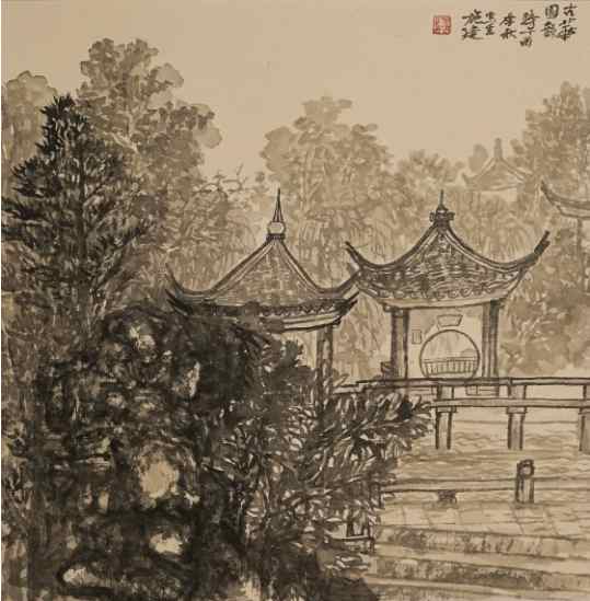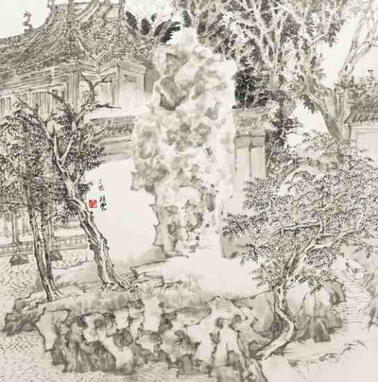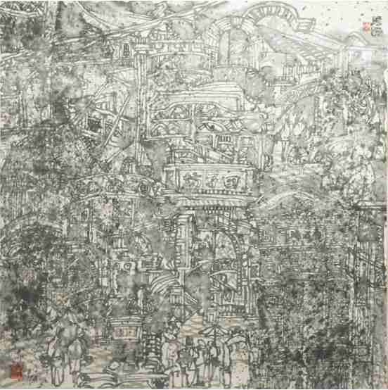 馮祥云《城市山林——豫園》國畫 50×50cm