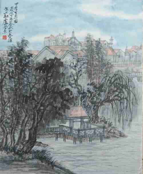 左杭林《奉賢青村鎮》國畫 68×68cm