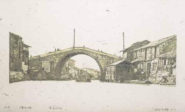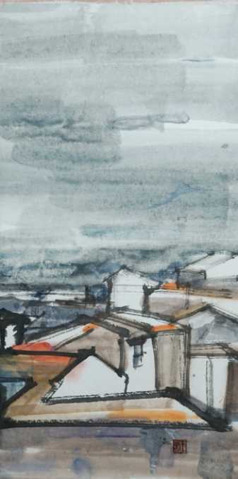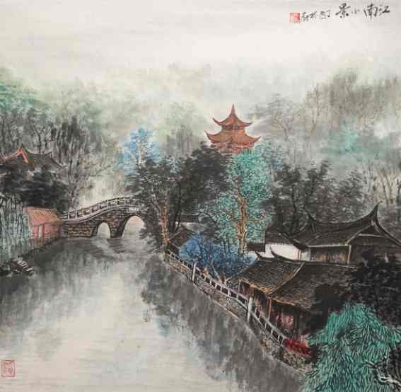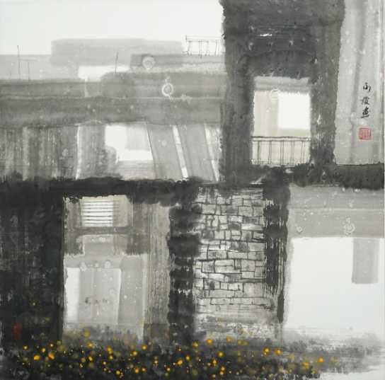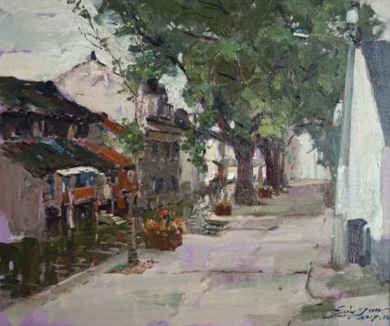 夏建峰《奉賢青村古鎮》國畫 68×68cm