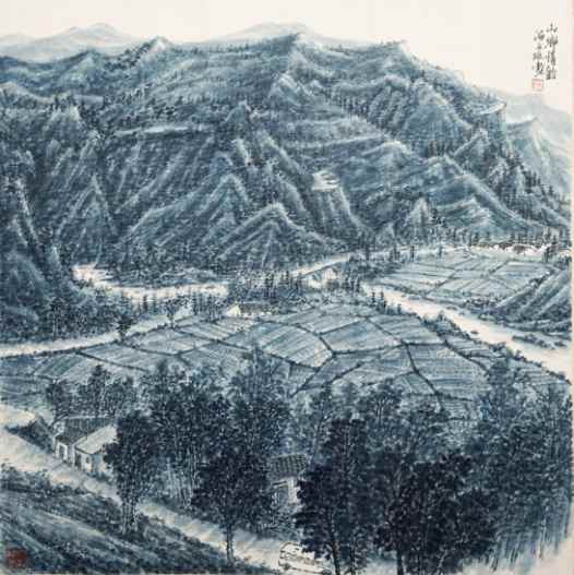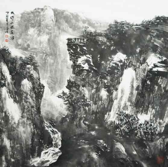 凌安生《太行山鍋家溝》國畫 68×68cm