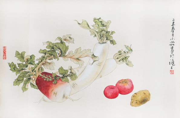 劉鑫磊《蔬果圖》國畫 46×70cm