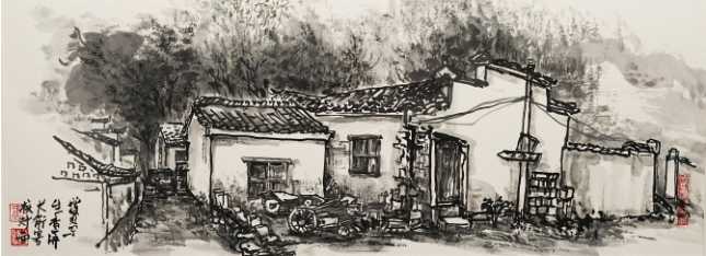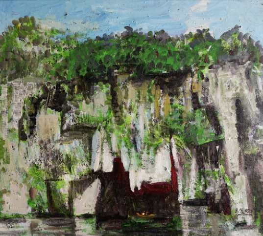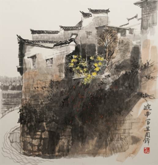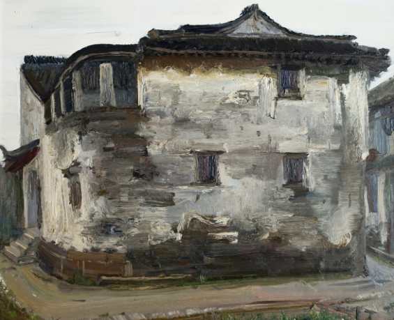 楊永發《即將拆遷的老屋》國畫 68×68cm