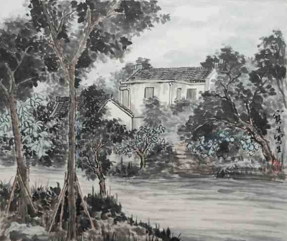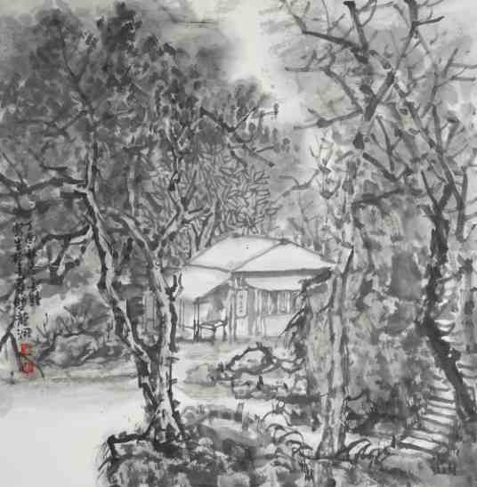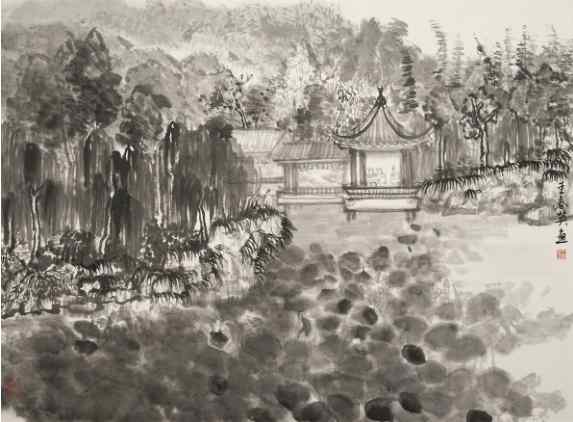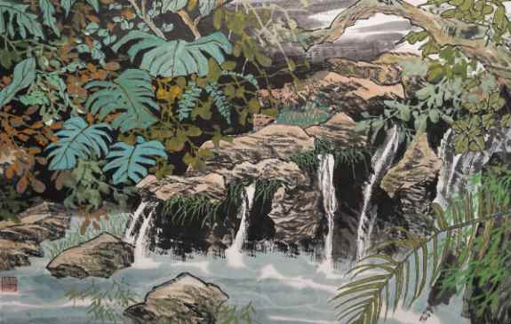 嚴榮鎮《上海植物園一角 2 》國畫 49×68cm