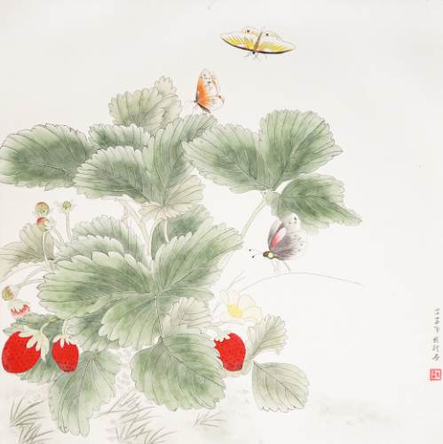 吳桂龍《蝴蝶草莓圖》國畫 65×65cm
