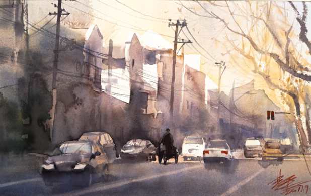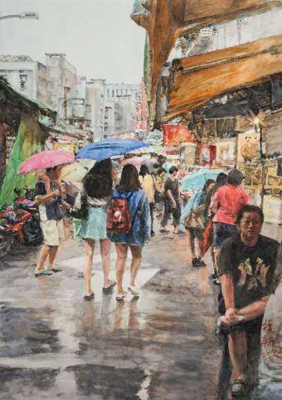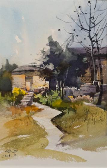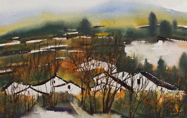 黃鼎鋒《查濟村口》水彩 48×68cm