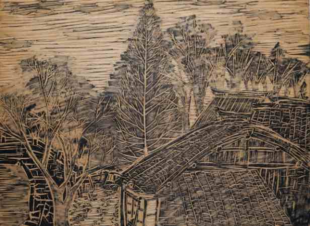王琦芬《秋天的荷塘》版畫 46×122cm