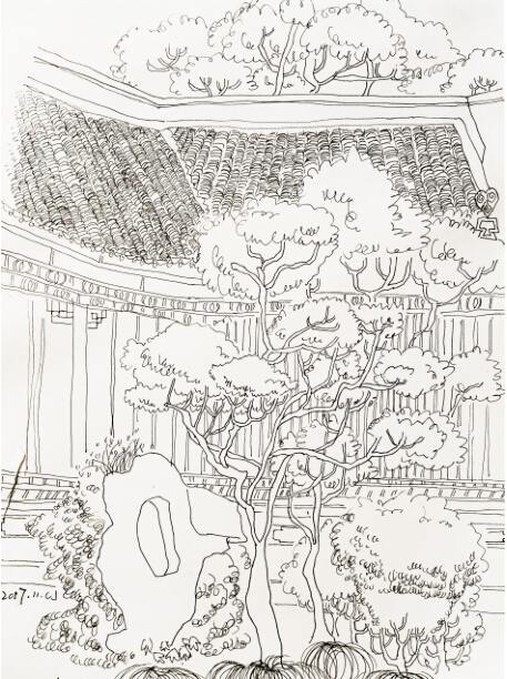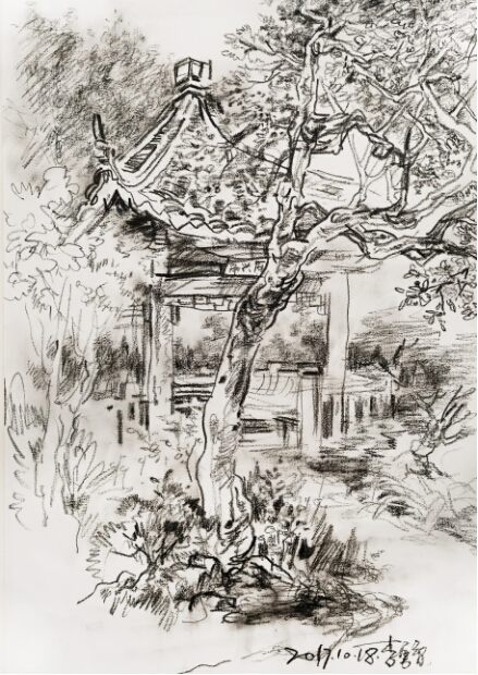陳瑾《公園美景速寫系列——亭臺樓閣》速寫 29×20cm