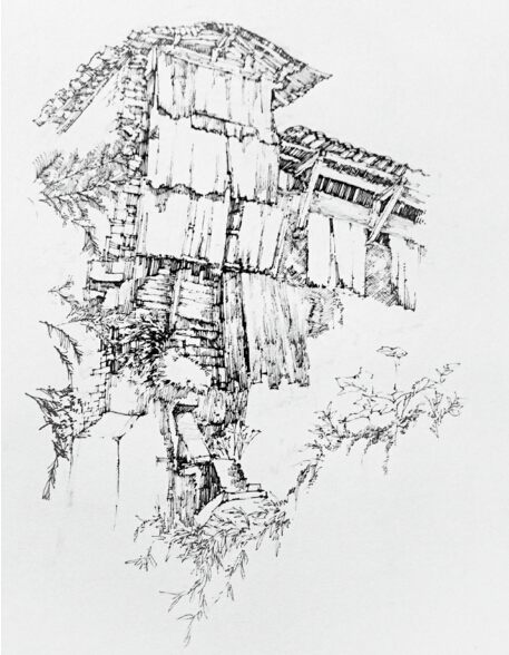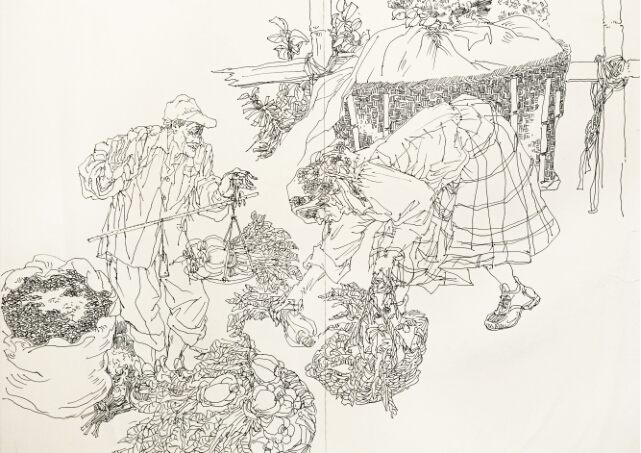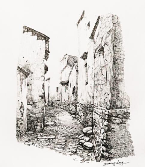 黃根?!豆沛倛D》鋼筆畫 39×54cm