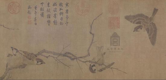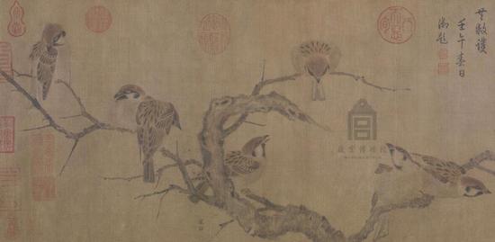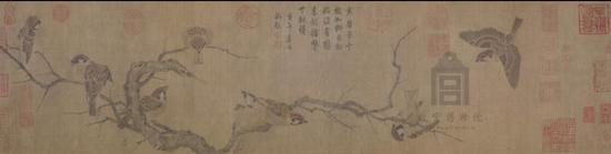 《寒雀圖》·絹本·設色·25.5×101.4cm