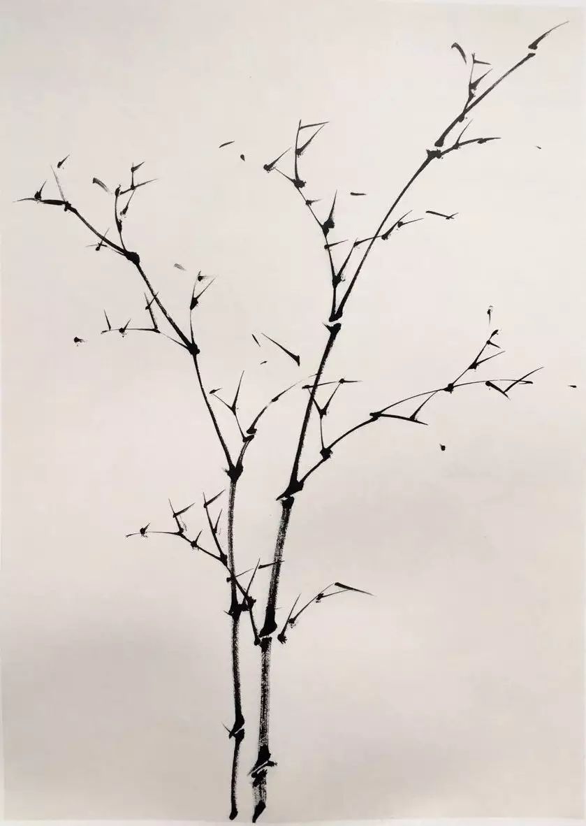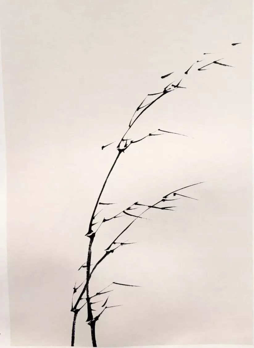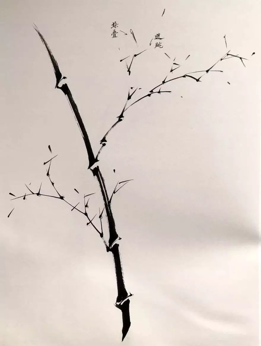 2、換較小筆畫枝,墨色要比竿稍濃。