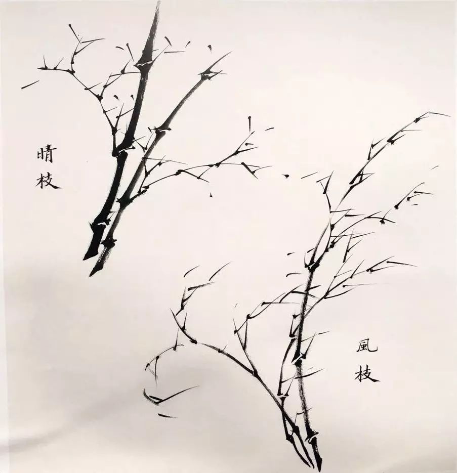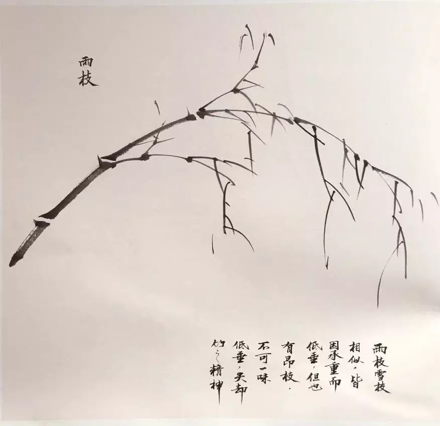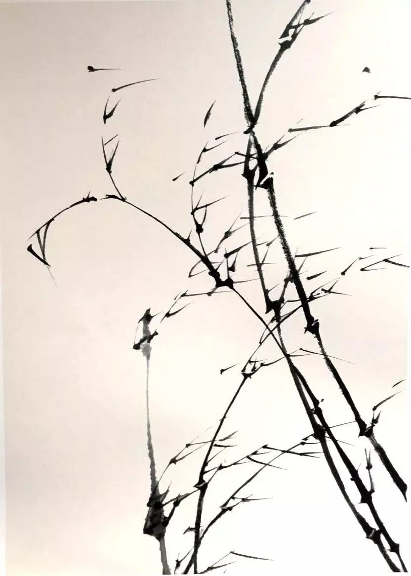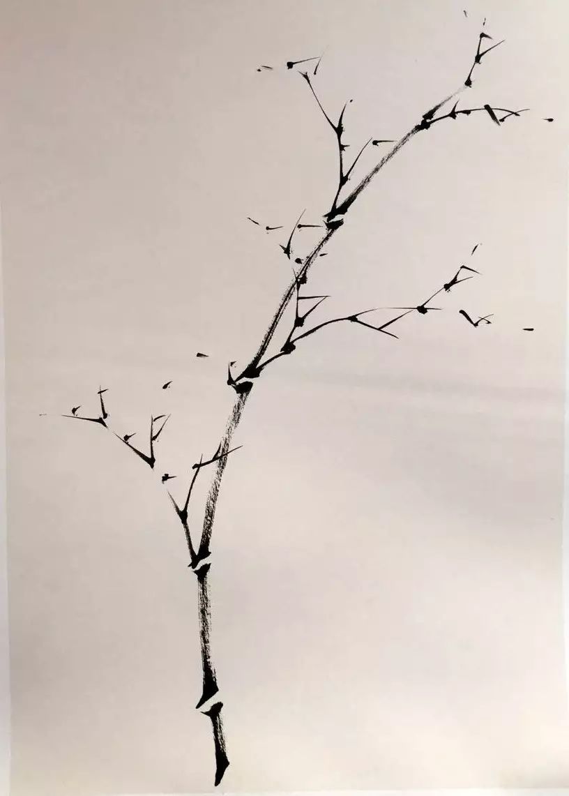 2、換較小筆畫枝,墨色要比竿稍濃。