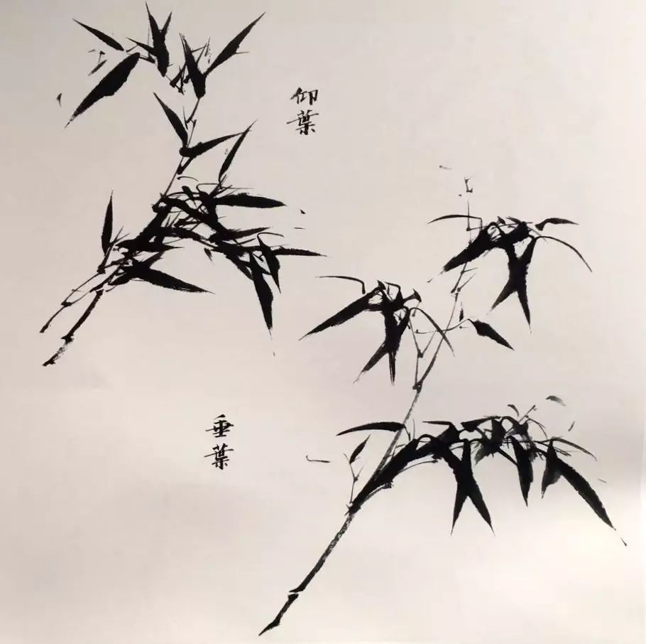 寫葉要有大小、長短、肥瘦、正側、俯仰、濃淡等變化。老葉、枯枝多下垂,用宜枯;新葉、嫩葉多上揚,用筆宜濕;正葉宜畫寬,側葉宜畫窄,前葉宜濃,后葉宜淡。