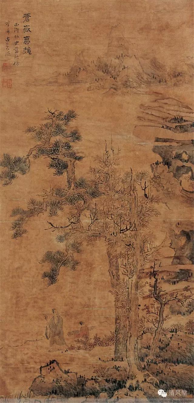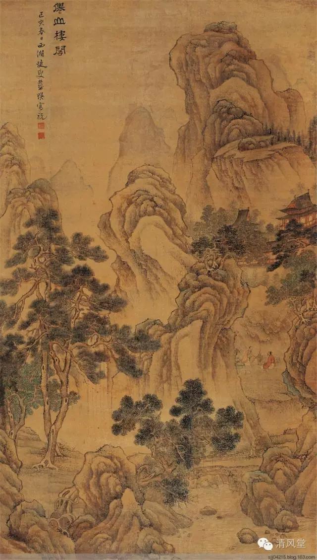 曾有美術(shù)史家把他列為“浙派”,對此,有專家學(xué)者提出異議認(rèn)為:藍(lán)瑛與戴進(jìn)之間既無師承關(guān)系,在繪畫面貌、藝術(shù)風(fēng)格上也大相徑庭,故不應(yīng)因二人同處浙江杭州而列為同一畫派—浙派。清代沈宗騫在《芥舟學(xué)畫編》中提出“藍(lán)瑛倡為武林派”,藍(lán)瑛和他的追隨者們應(yīng)稱為“武林派”。我們知道,畫史上有一些畫家因種種原因沒有留下更多的生平資料,使后人很難從他們一生的行蹤、生活背景、個性脾氣、思維方式中去了解他們所形成的藝術(shù)風(fēng)格、審美理念,只能從他們留存于世的繪畫作品中去洞察其藝術(shù)之軌跡,藍(lán)瑛就是這眾多畫家中的一位。長期以來,學(xué)術(shù)界對文人畫家及其作品比較重視,由于藍(lán)瑛是一位職業(yè)畫家,又沒有詩文和著作留存于世,因此在畫史上很少有關(guān)于他的記載和涉及。本文試通過對藍(lán)瑛繪畫作品的具體分析,來闡述藍(lán)瑛山水繪畫的藝術(shù)特色和所取得的成就。